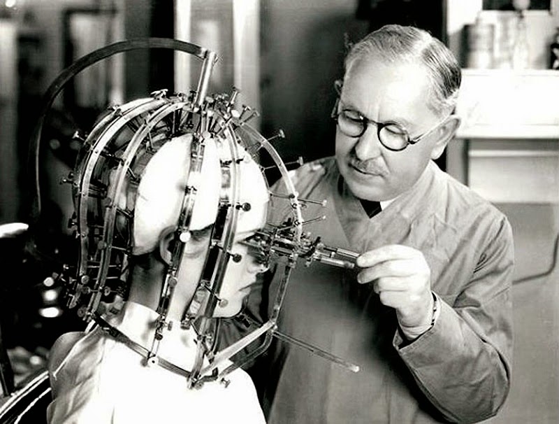 Procedure of removing freckles with carbon dioxide, 1930s.