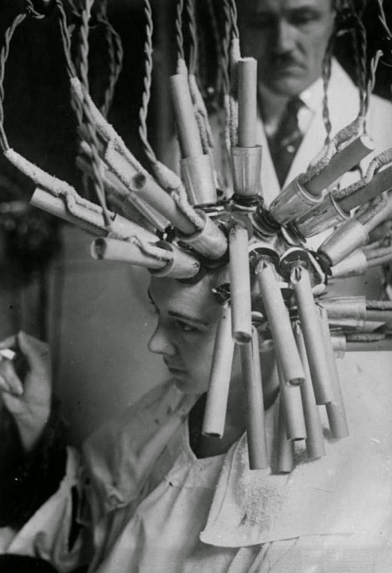 One of the most striking examples is the permanent hair wave machine, popular in the 1920s and 1930s.