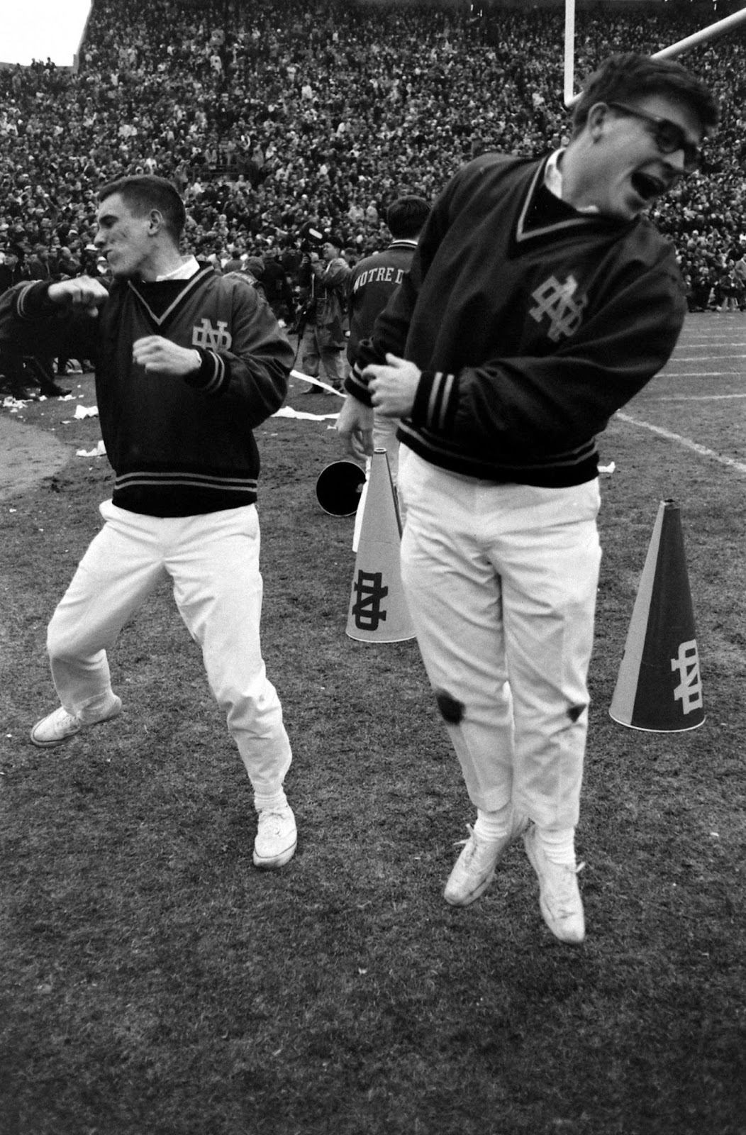 Notre Dame cheerleaders work the crowd during the 1966 “Game of the Century” against Michigan State, 1966. (Bob Gomel—The LIFE Picture Collection.)