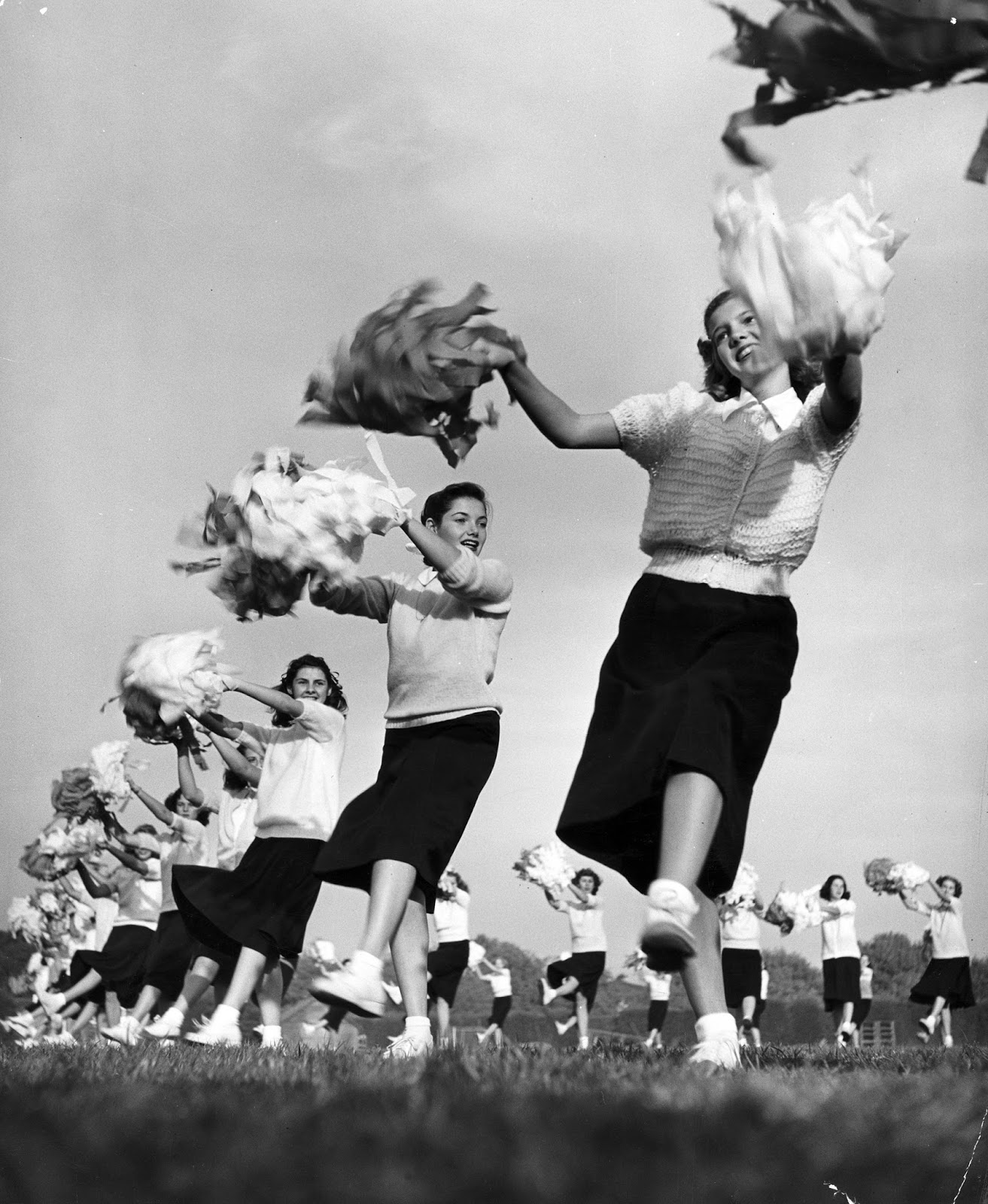 Sixty high school cheerleaders with crepe-paper pompons whip up football spirit, 1947. (Ralph Crane—The LIFE Images Collection.)