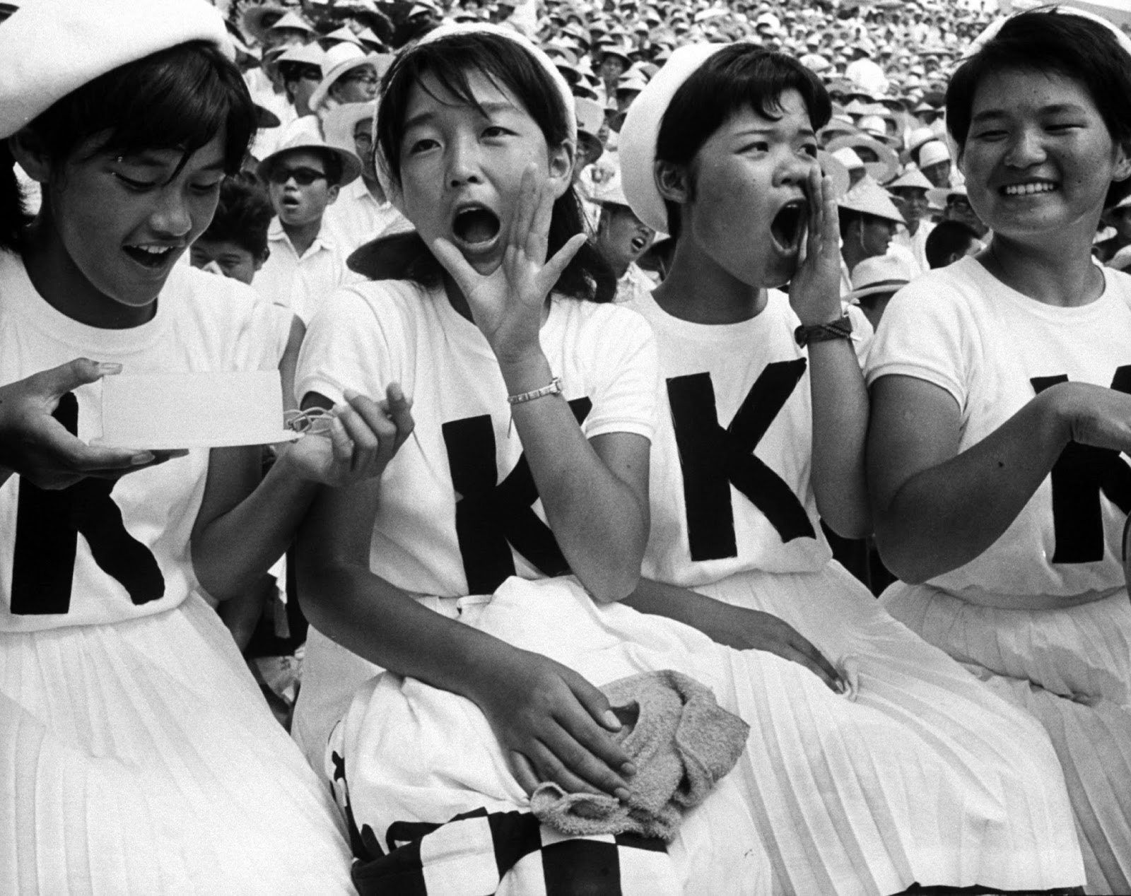 A group of cheerleaders rooting for their team, 1964. (Larry Burrows—The LIFE Picture Collection.)
