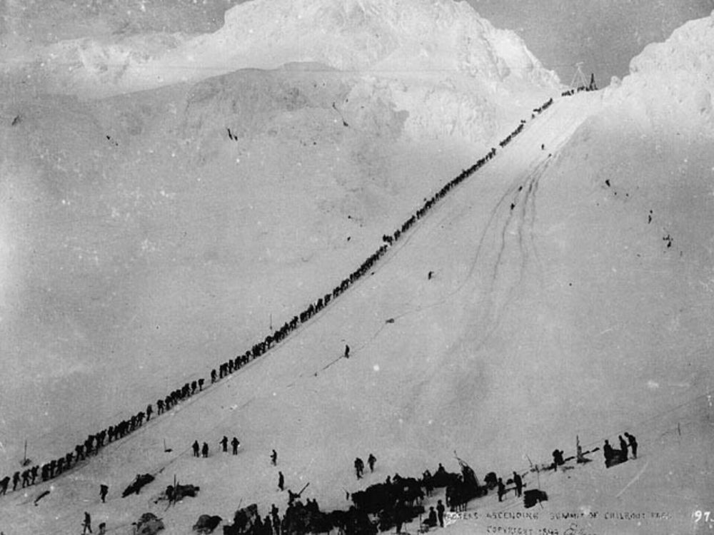 The idea of striking it rich led over 100,000 people from all walks of life to abandon their homes and embark on an extended, life-threatening journey across treacherous, icy valleys and harrowing rocky terrain.