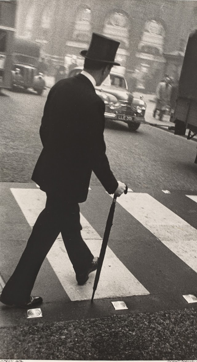 He immersed himself in the daily life of the city, capturing moments that most would overlook. His lens followed the sharply dressed financiers through the financial district, documenting the uniformity and ritual of British business culture with a mixture of curiosity and subtle critique.
