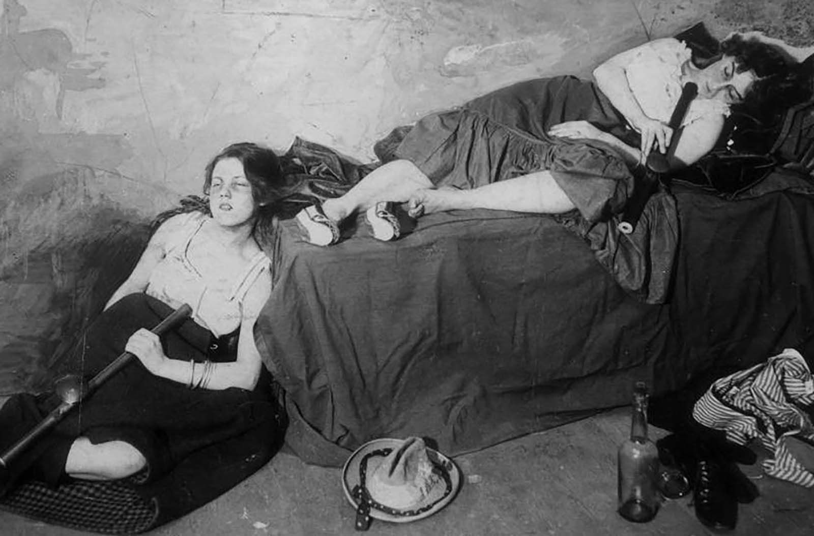 Opium smoking was brought to America by the rush of migrants during the California Gold Rush. These two men were pictured in San Francisco in 1898.