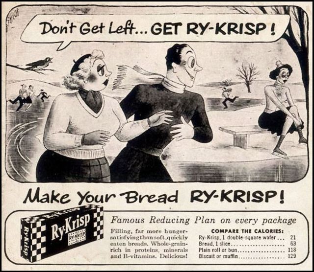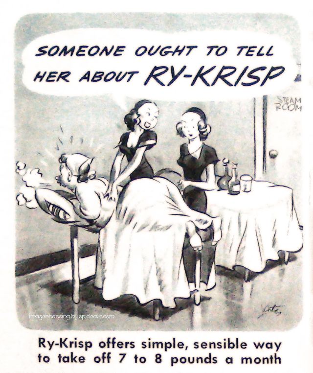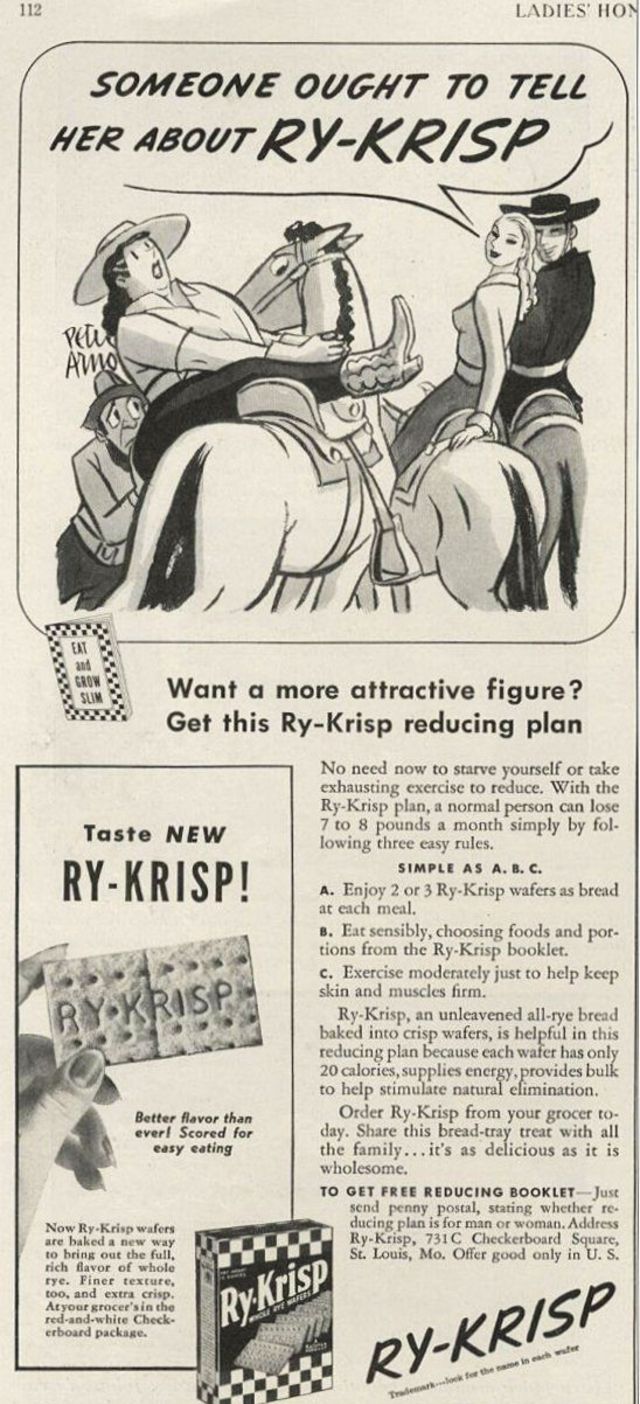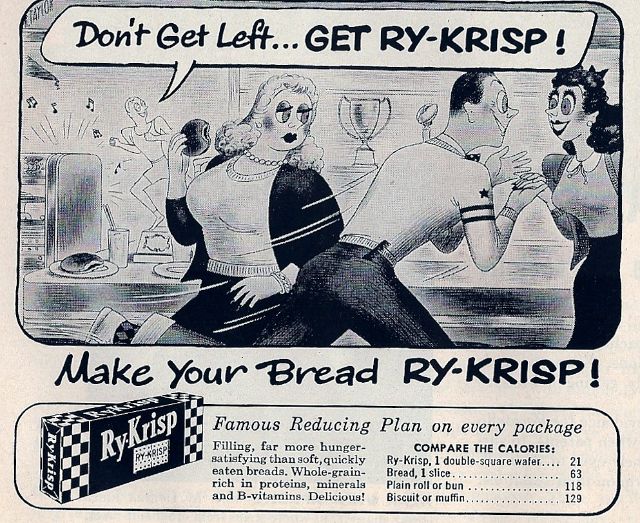 According to Pretty Sweet magazine, starting in the 1930s, Rye-Krisp heavily advertised their products as a “reducing” (another word for “weight loss”) product in magazines that were marketed to women and young girls.