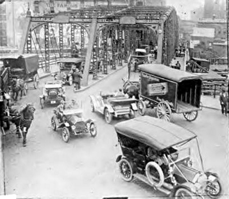 Traffic on a bridge in Chicago, Illinois, 1927.