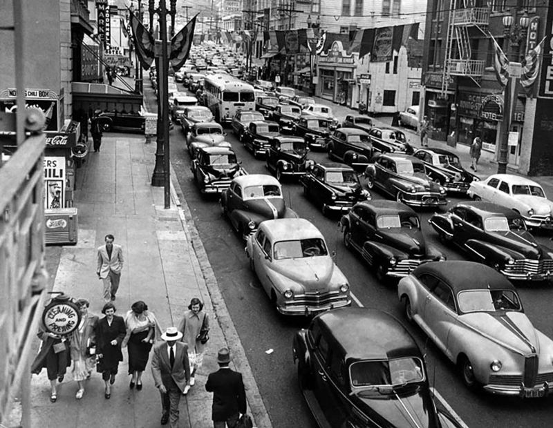 Traffic congestion worsened after World War II, as suburban expansion and economic prosperity fueled even greater reliance on cars.
