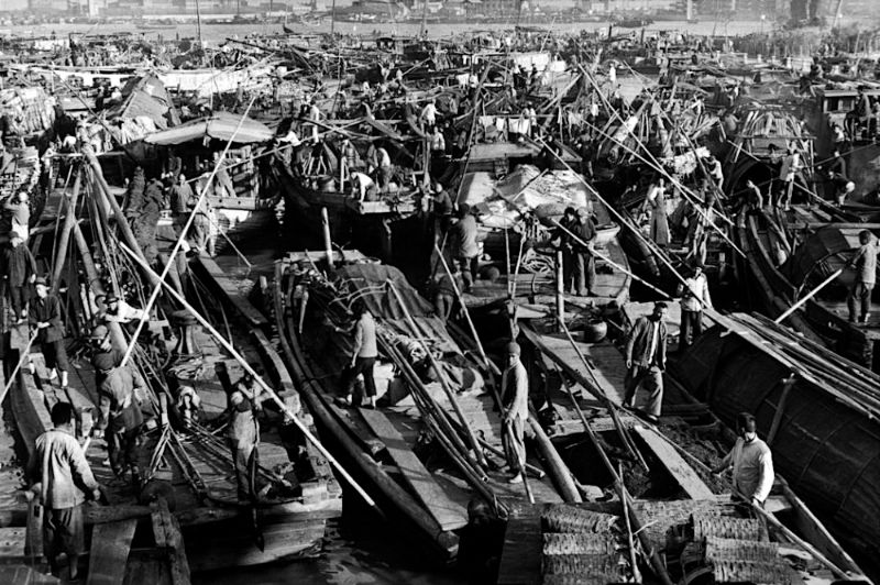 Traffic jam on the Suzhou canal, China, December 1948.